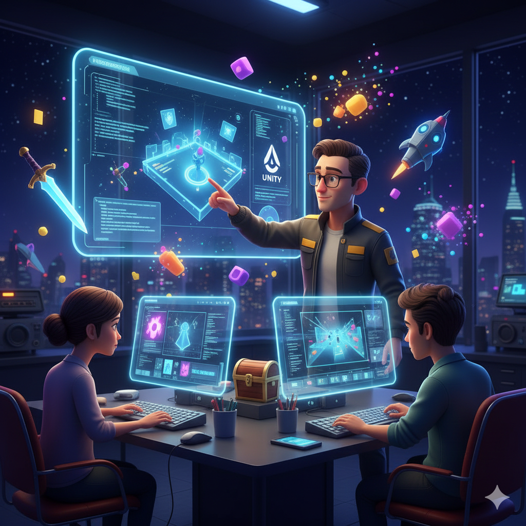 تعلم تطوير الألعاب باستخدام Unity، بدءًا من المفاهيم الأساسية وحتى بناء ألعاب ثنائية وثلاثية الأبعاد تفاعلية باستخدام لغة C#.
